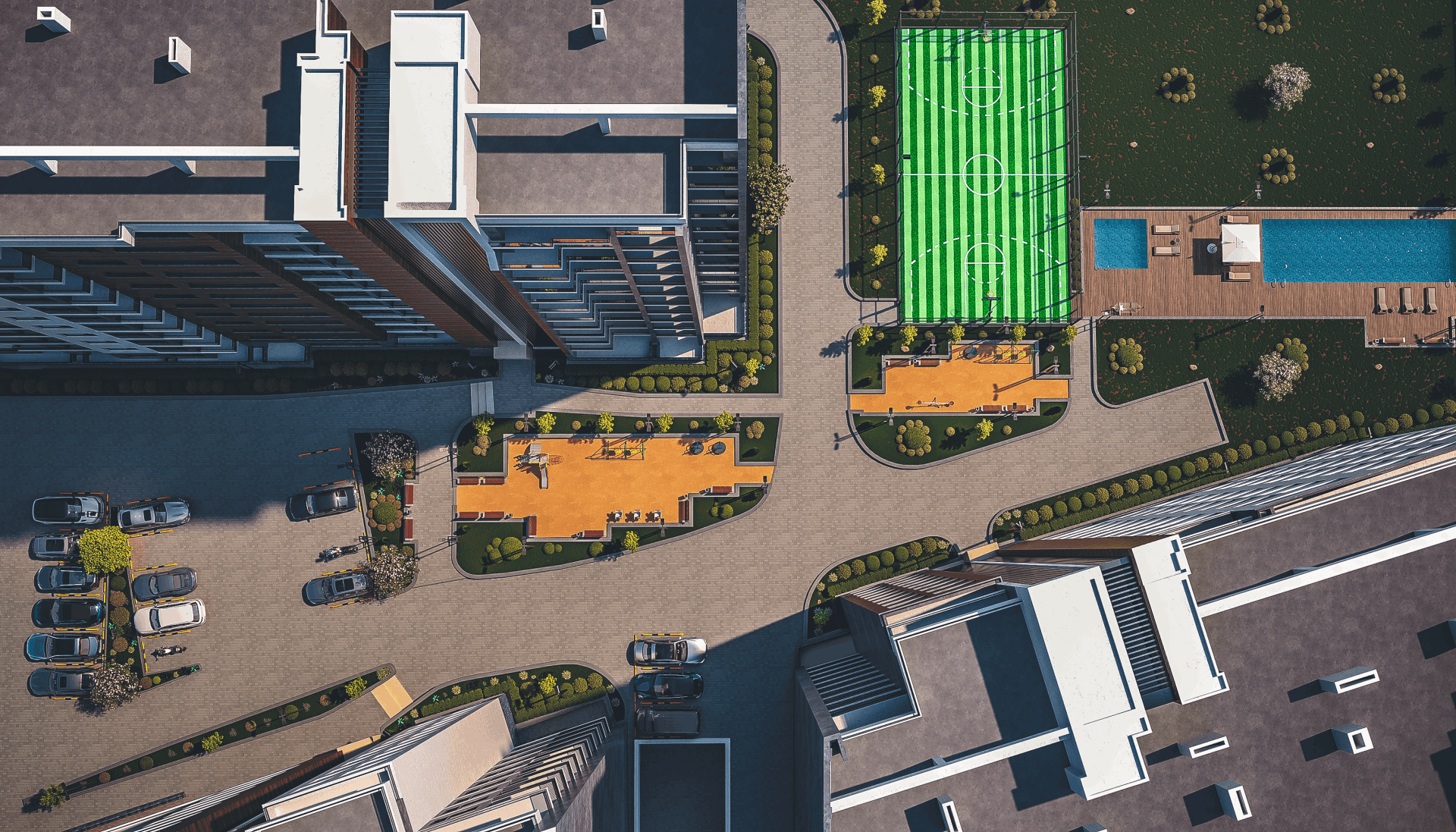 The complex consists of four residential blocks, each of which responds to the needs and preferences of both children and families, as well as business people. Each block is built with high-quality materials and equipped with underground parking.