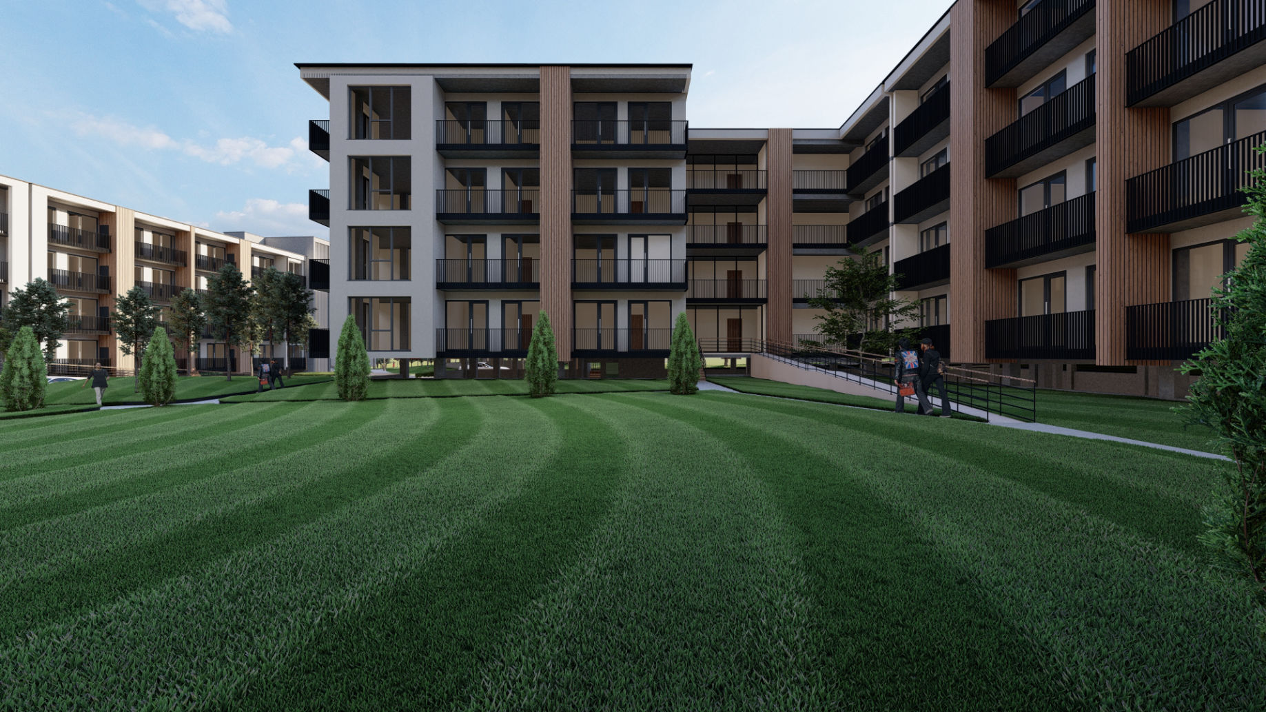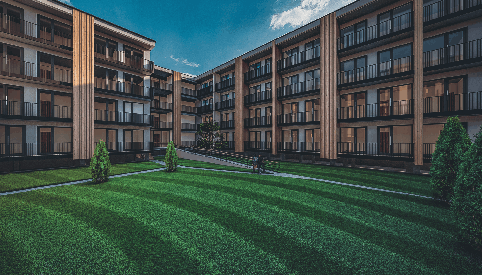A modern residential complex that offers residents a cozy environment away from the chaos of the city. The complex includes three residential blocks. Each of them is built with the highest quality energy-efficient and environmentally friendly building materials.